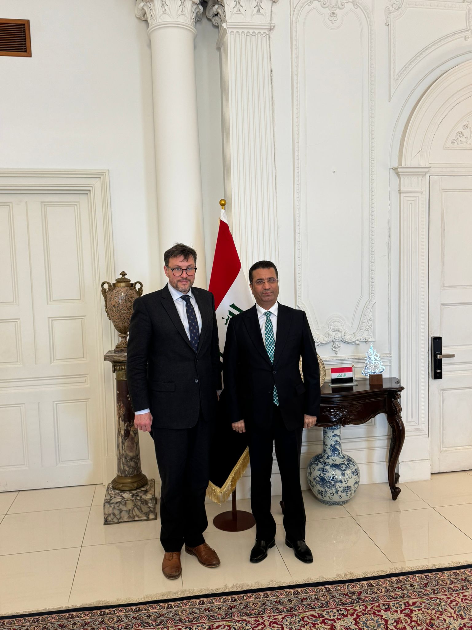 During the meeting, Christophe congratulated His Excellency on his appointment as Ambassador. Their discussion covered a wide range of issues, including current affairs in the United Kingdom, the forthcoming UK elections, the formation of the Iraqi government and the ongoing war between the United States, Israel, and Iran.
