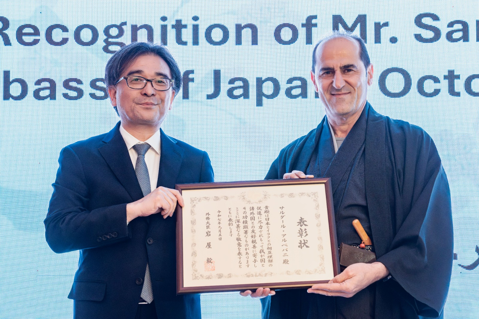 This is the second time Mr. Sardar has received this prestigious recognition — the first was in 2022, awarded by the Ambassador of Japan to Iraq, Mr Suzuki Kotaro , and now presented on behalf of the Minister for Foreign Affairs of Japan by the Ambassador of Japan to Iraq, Mr. Akira Endo.